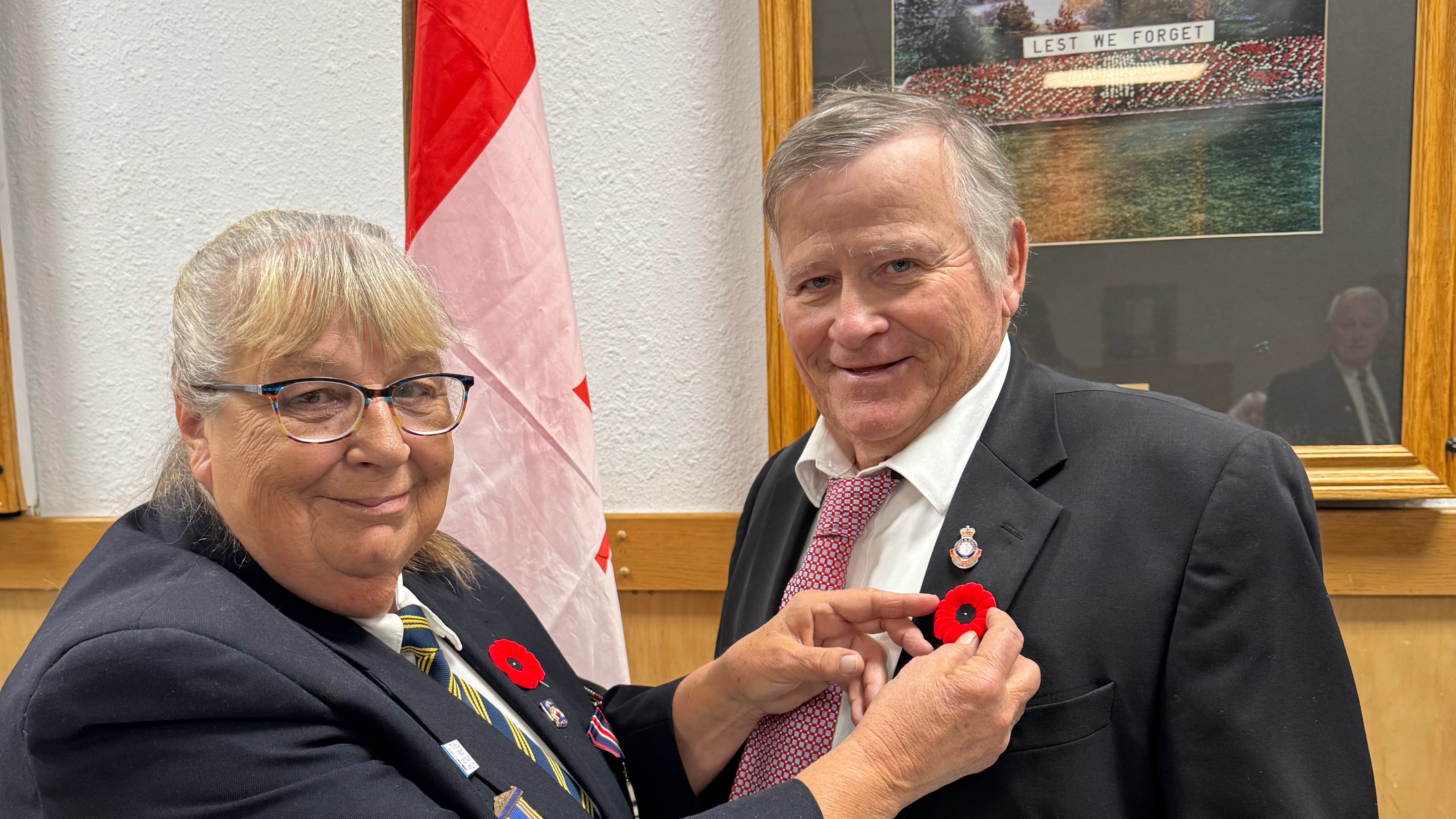 Mayor of Pelham, Marvin Junkin, received the first Poppy on Friday, October 31,2025 as part of the pinning ceremony that marks the beginning of the annual Remembrance Day activities.