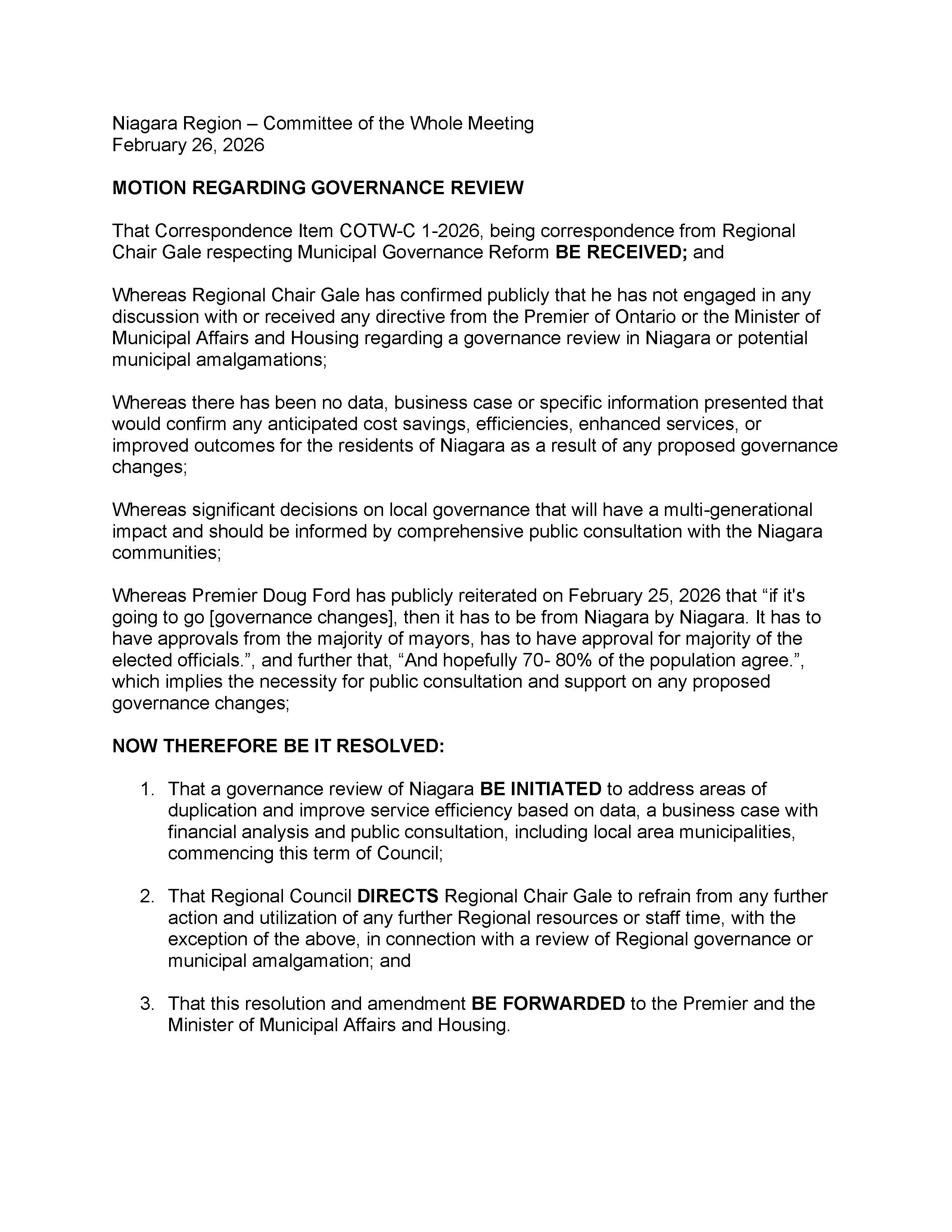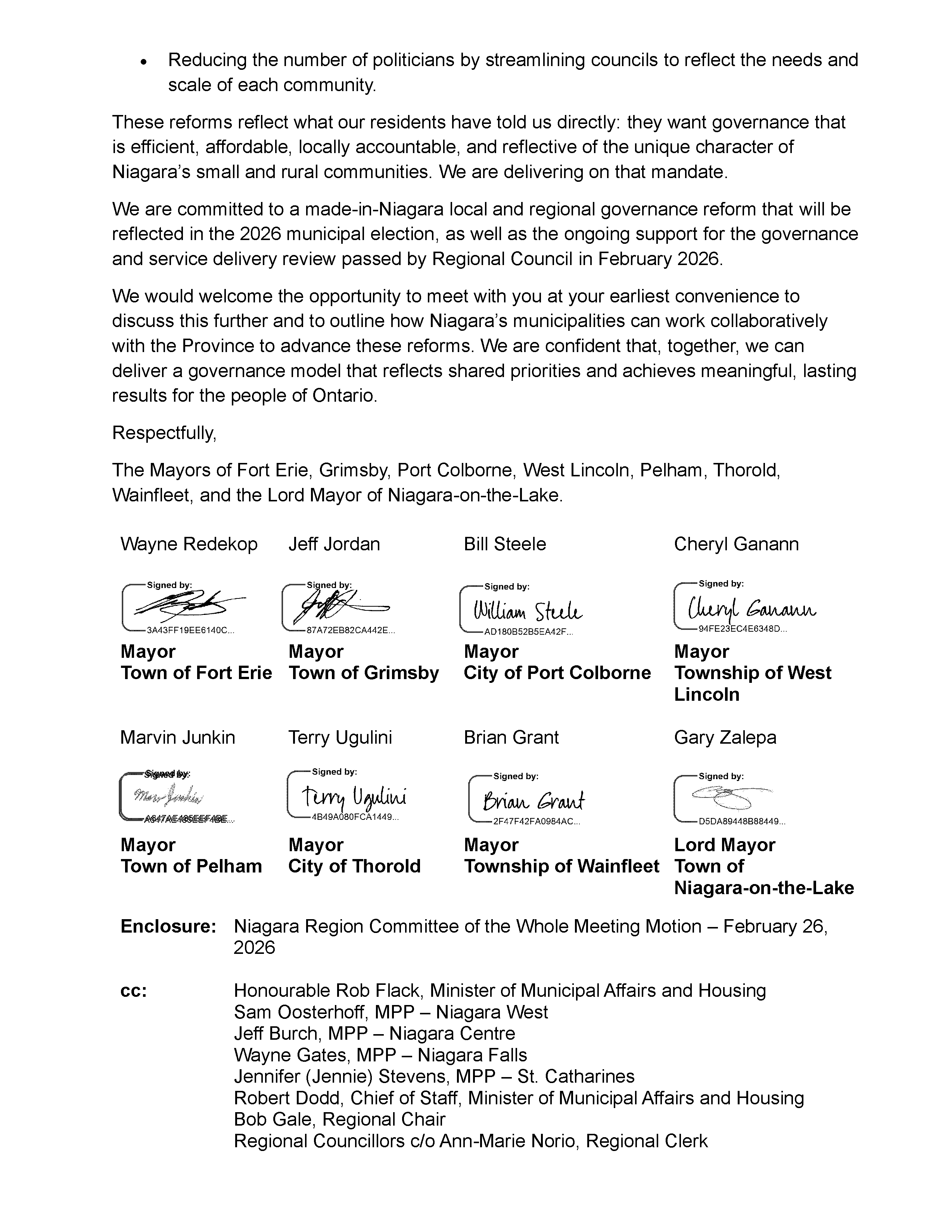 Joint Letter from the Lower-Tier Municipalities of Niagara Region